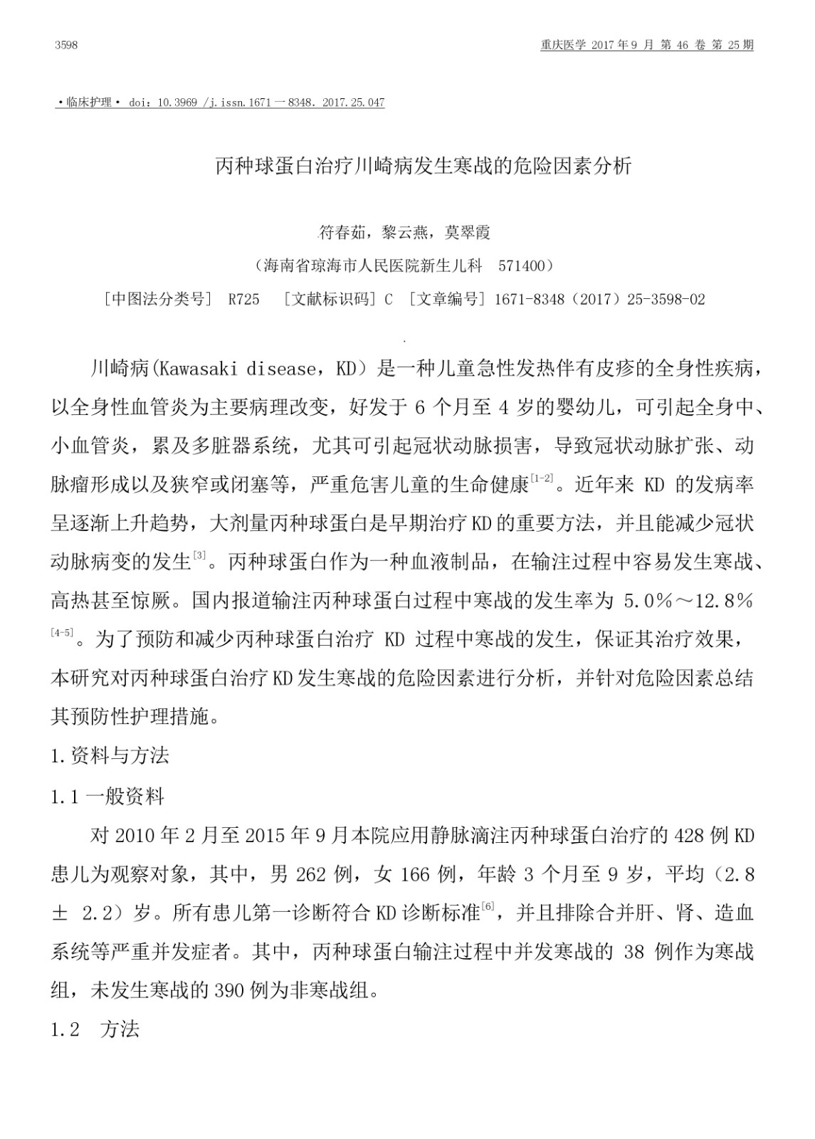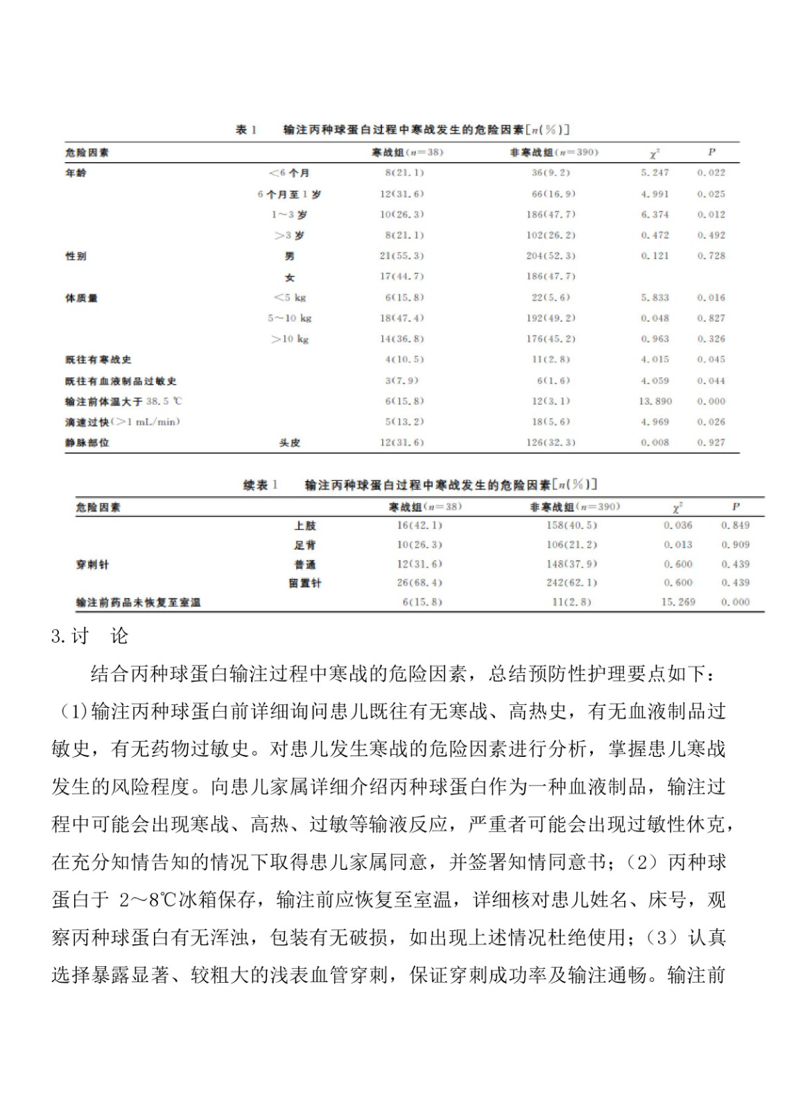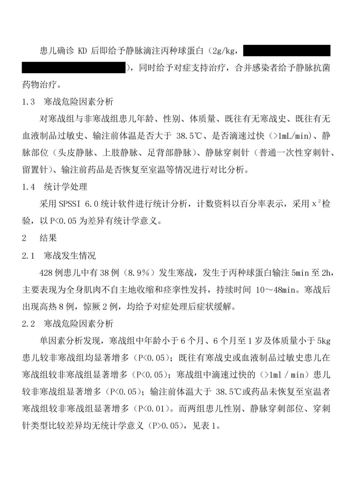 丙種球蛋白治療川崎病發(fā)生寒戰(zhàn)的危險(xiǎn)因素分析